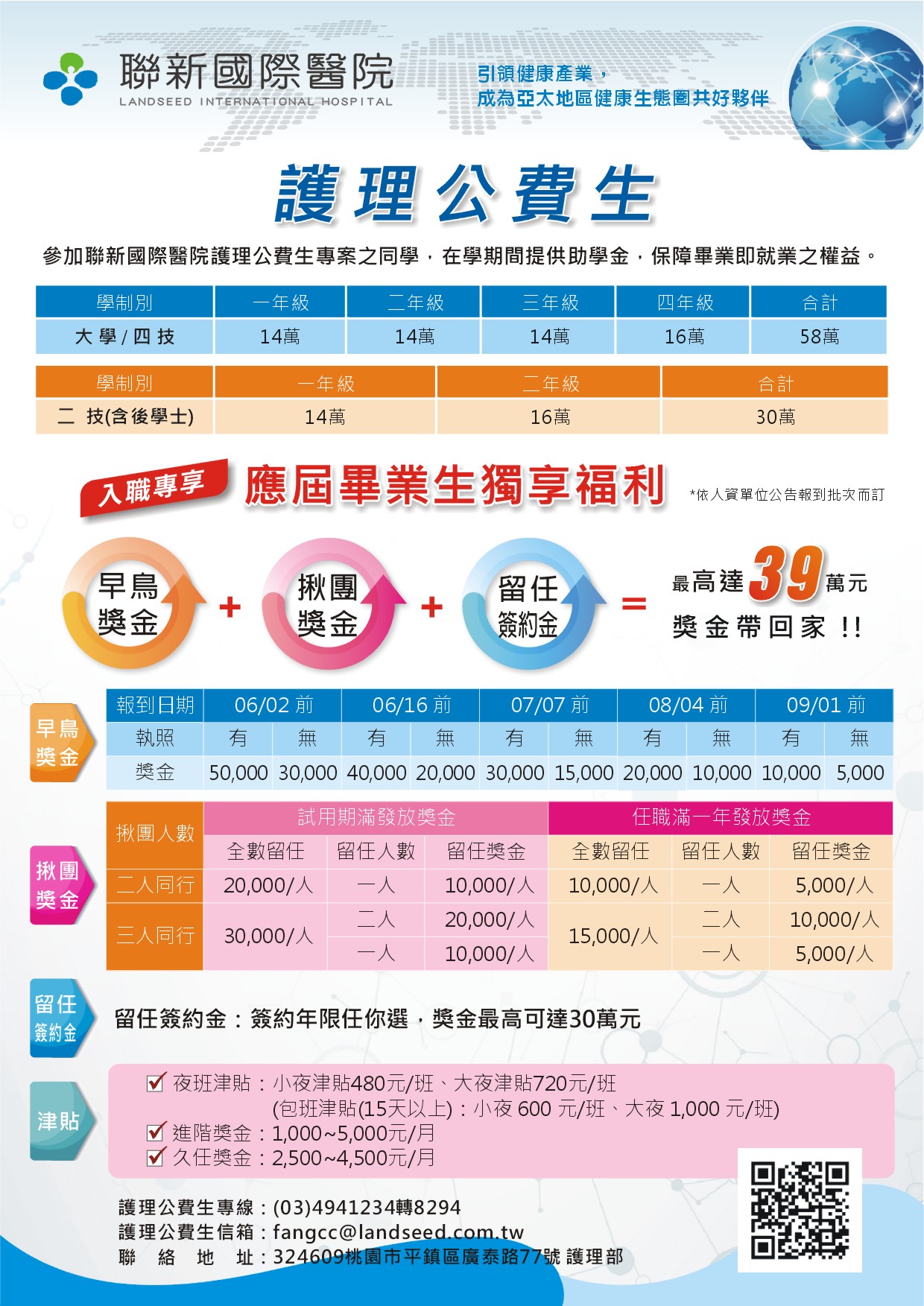 三、聯新國際醫院補助大專院校護理系(科)學生獎助學金辦法1份及聯新國際醫院徵才DM 2份。