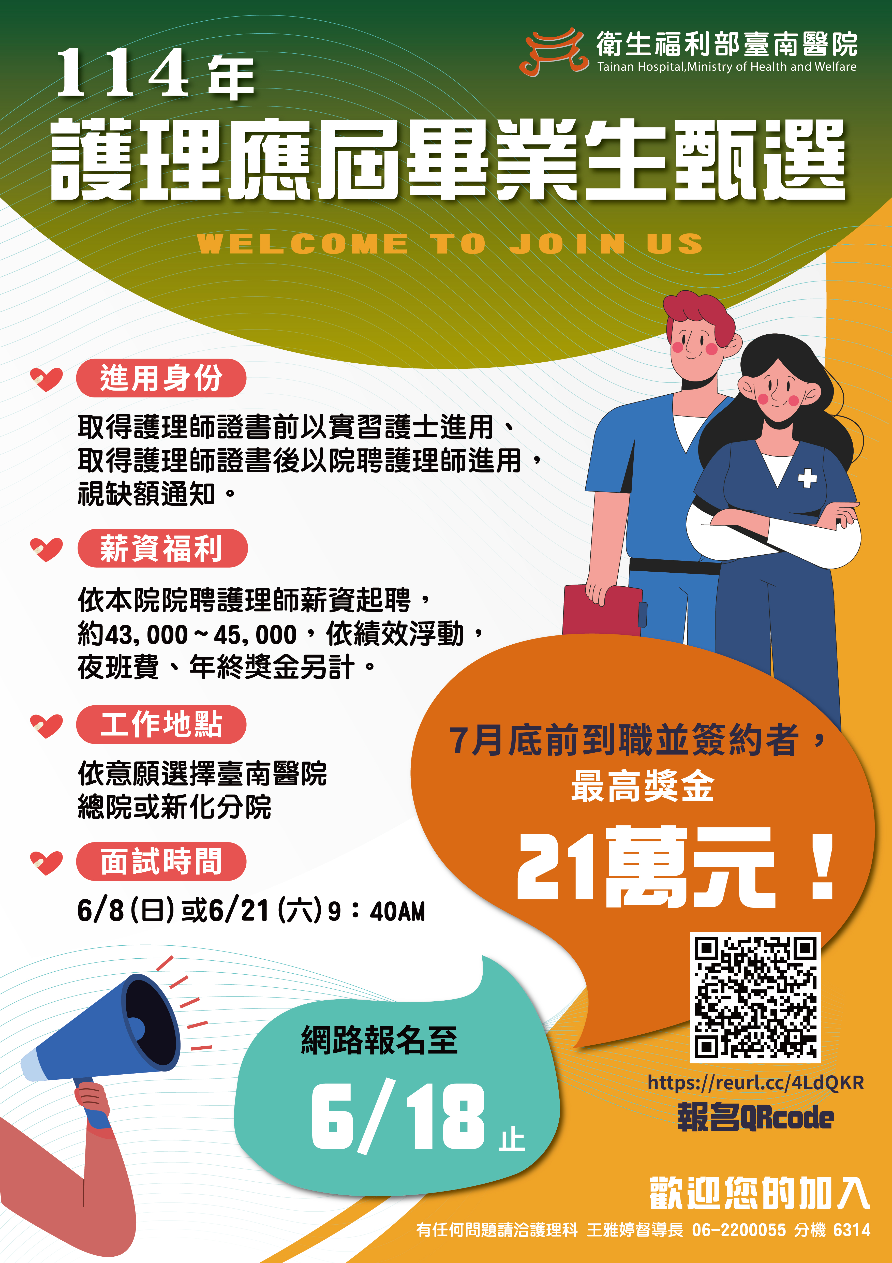 一、甄選資格:(一)對社區型醫院護理臨床工作有興趣者。(二)參加甄選如未具有中華民國國籍,應符合就業服務法及台灣地區與大陸地區人民關係條例等相關規定。